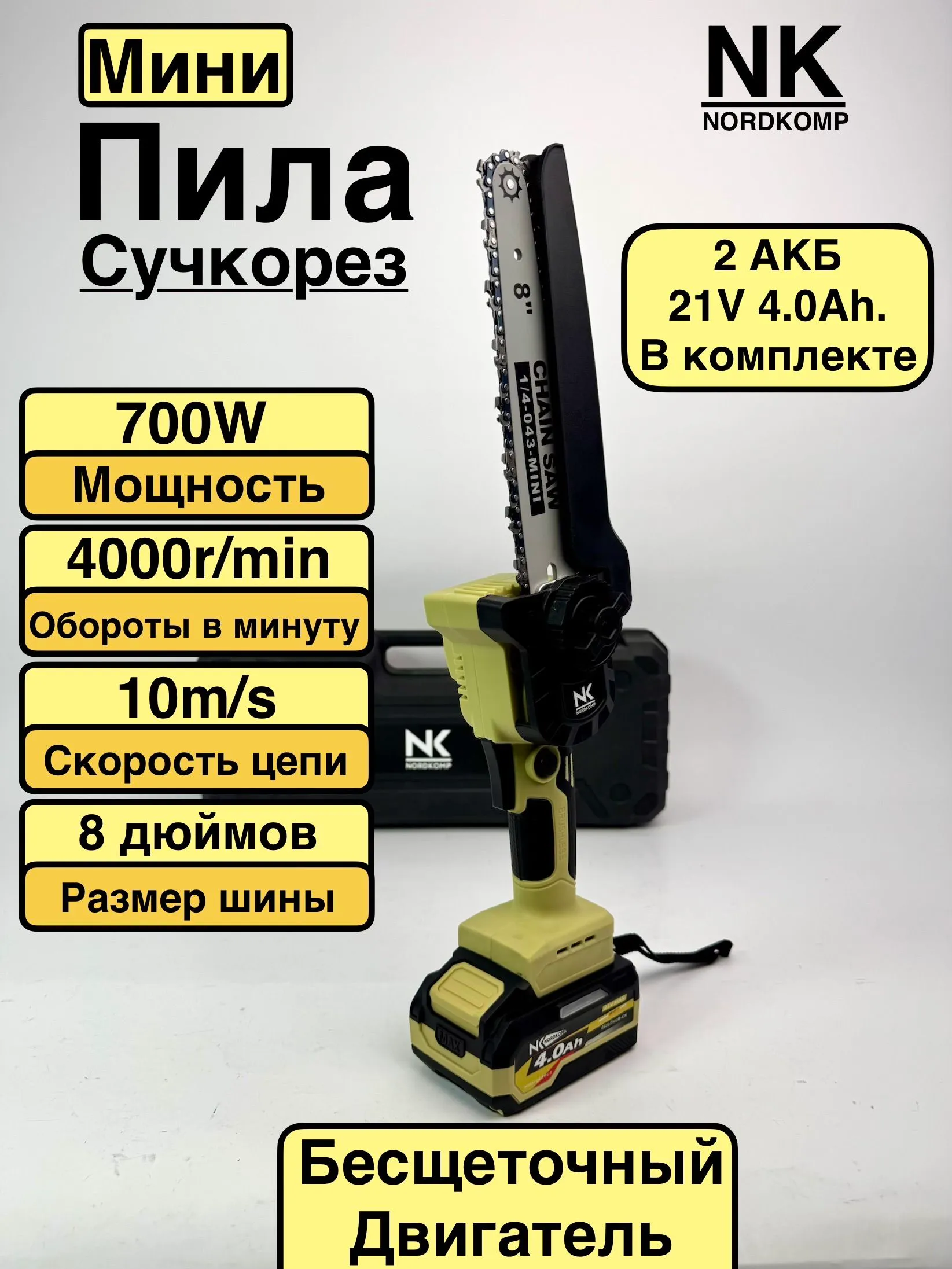 Аккумуляторная цепная пила- сучкорез NordKomp 8 дюймов.