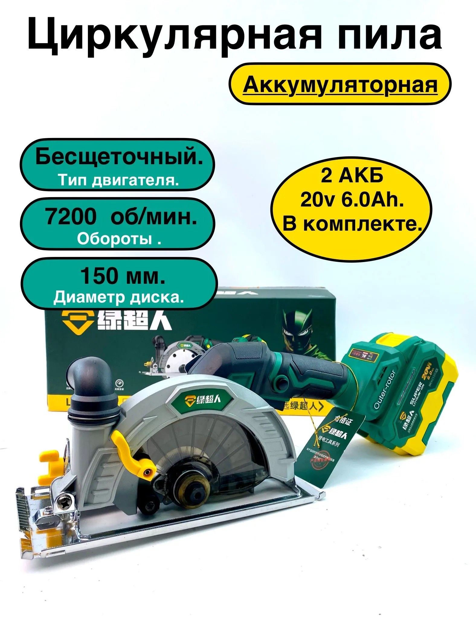 Циркулярная пила 2 акб 6.0 Ah С индикацией заряда. зарядная станция. фирменная сумка. диск. коробка.