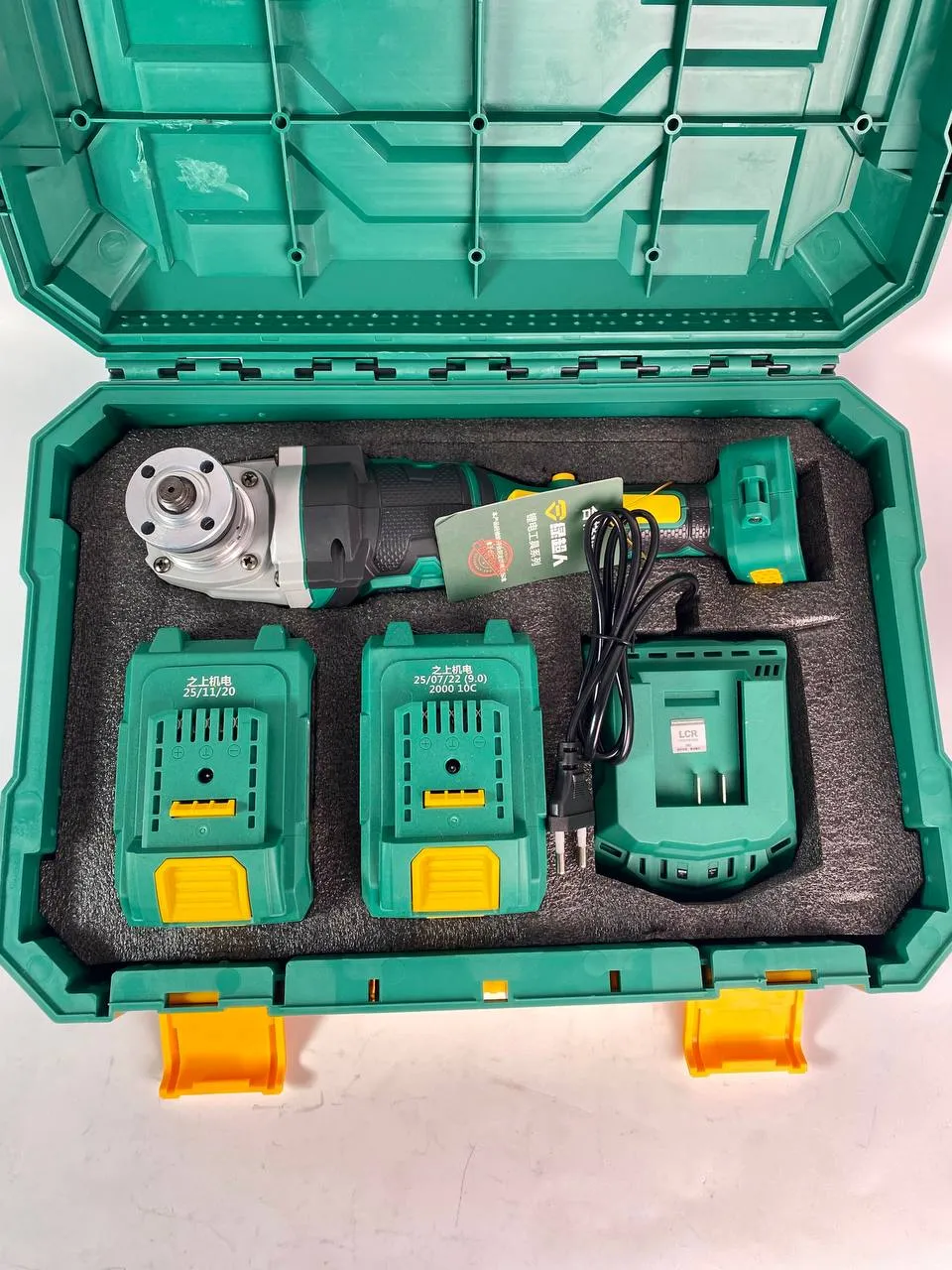 Болгарка Superman LCR 20125 1шт. Аккумулятор 20V 6.0Ah с индикацией заряда 2шт. защитный кожух 1шт. ручка 1шт. ключ для ушм 1шт. зарядная станция 2Ah. 1шт. кейс 1шт.