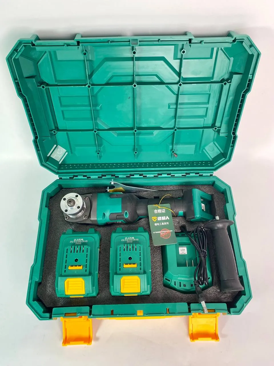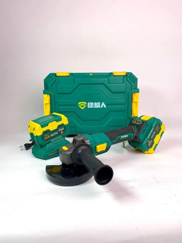Болгарка Superman 1шт. Аккумулятор 21V 9.0Ah с индикацией заряда 2шт. защитный кожух 1шт. ручка 1шт. ключ для ушм 1шт. зарядная станция 2Ah. 1шт. кейс 1шт.