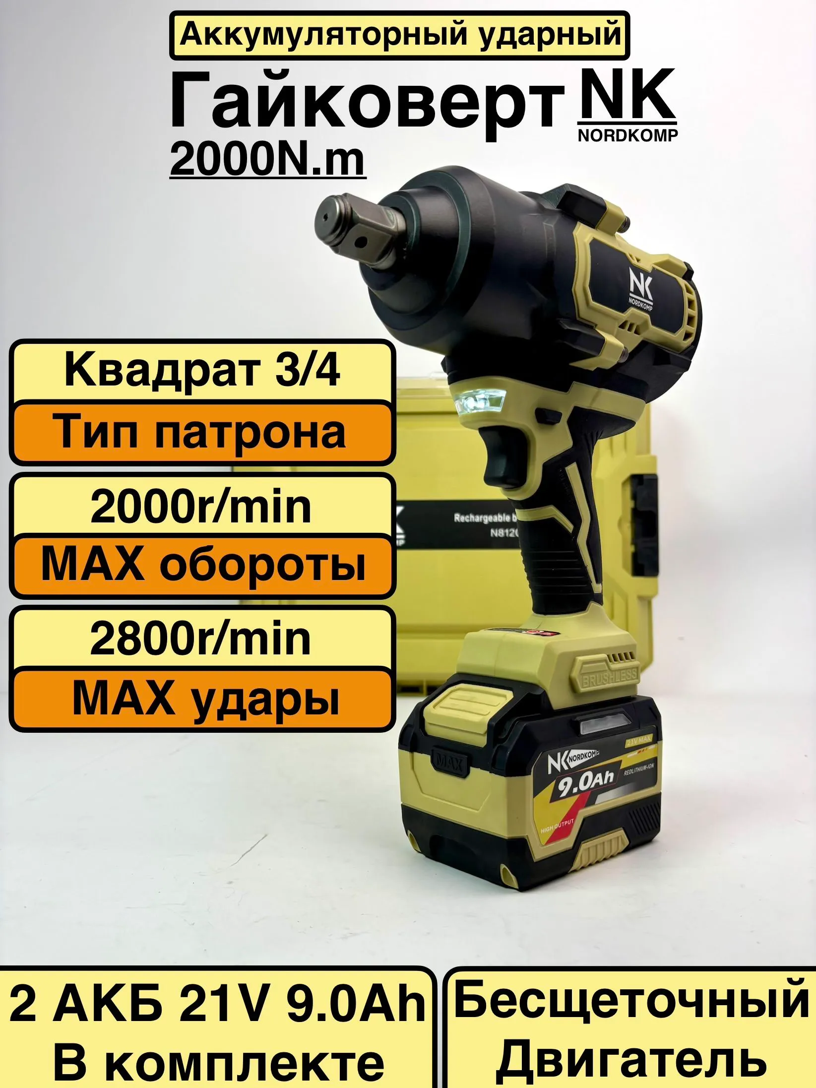 Представляем вашему вниманию уникальный аккумуляторный бесщеточный ударный гайковерт 2000 Н/м NORDKOMP.