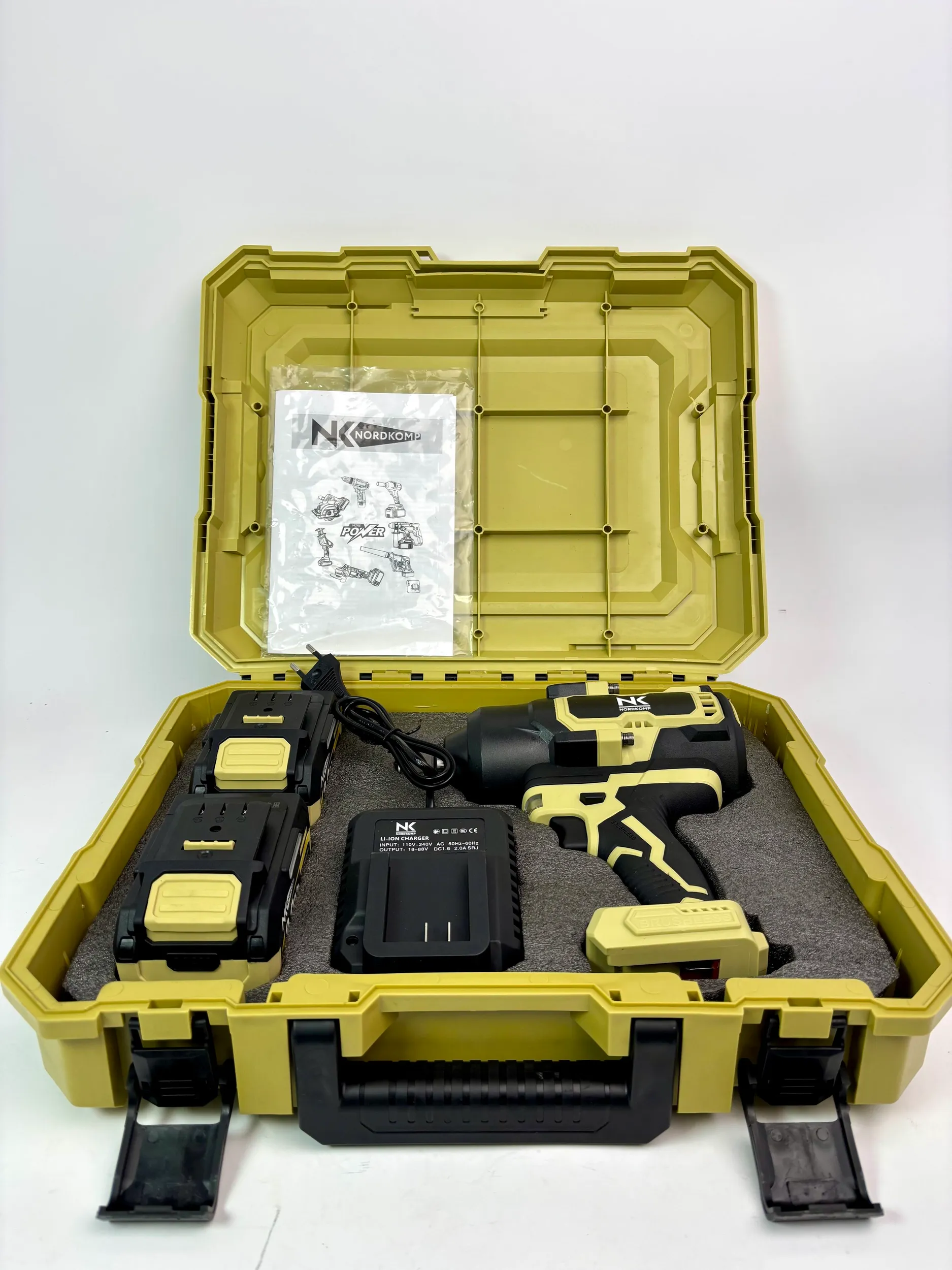 - Грузовой гайковерт 2000 Нм - 2 Аккумулятора 21 В / 9 А - Зарядная станция - Кейс