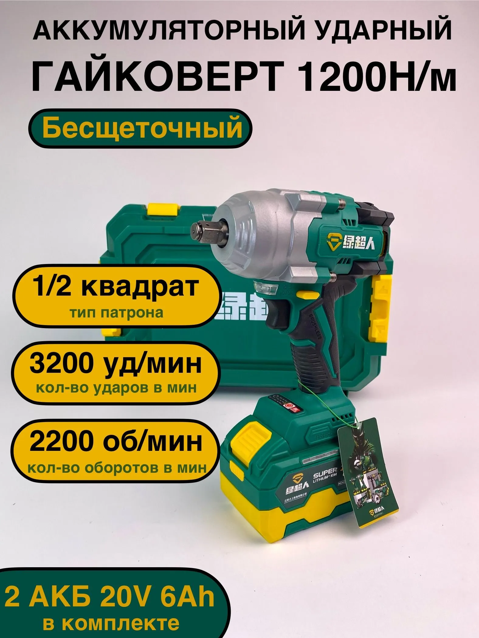 — Гайковерт. — 2 Аккумулятора 20V 6.0Ah — Зарядное устройство (док станция на 2.0 Аh) — Кейс для удобной транспортировки. — Головка на 22 мм.