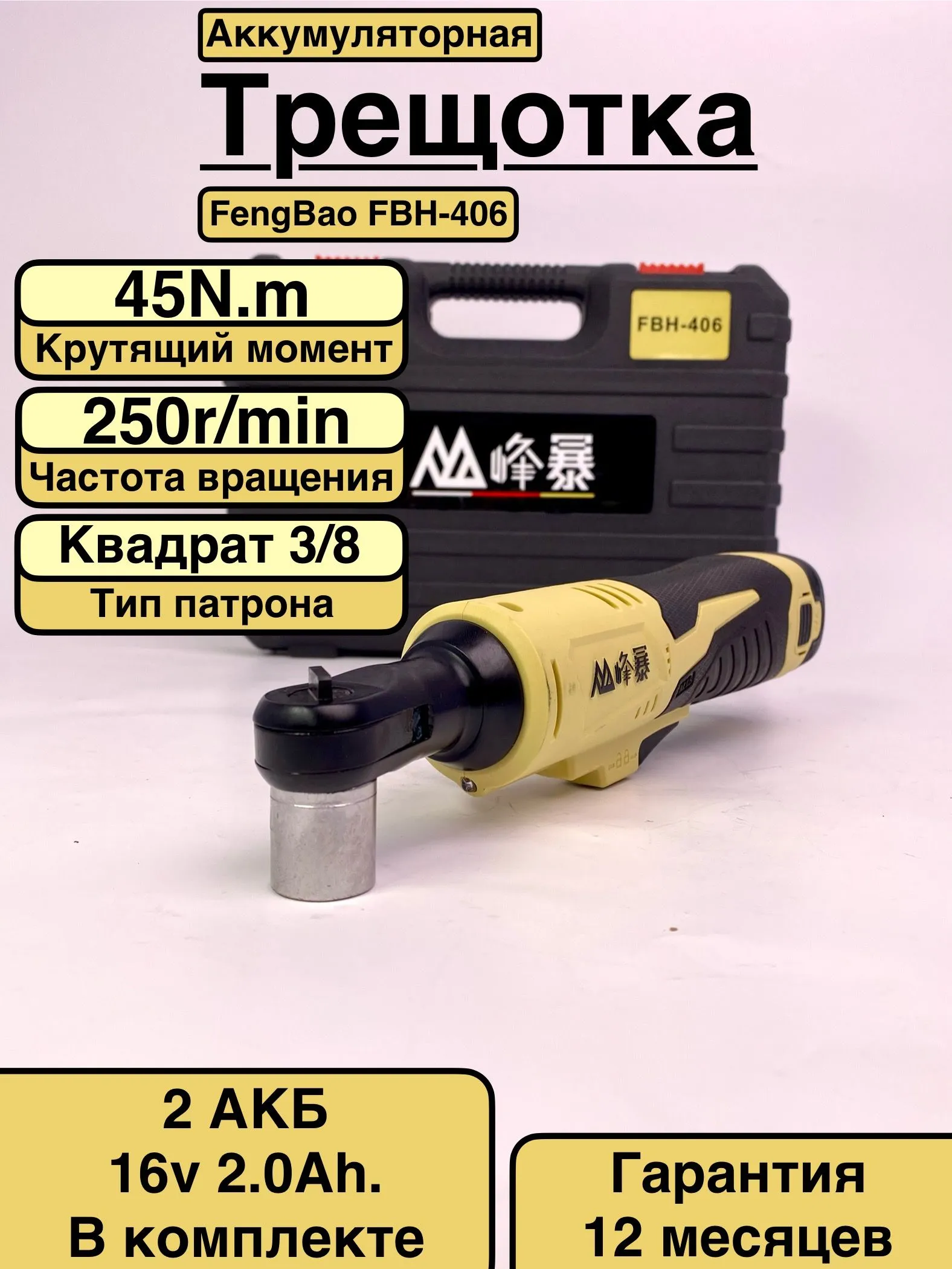 Аккумуляторная трещотка FengBao FB-406 — это инструмент для работы с резьбовыми соединениями, оснащённый бесщёточным двигателем и крутящим моментом 45 Нм. Подходит для бытового и полупрофессионального использования, в том числе в автомастерских.