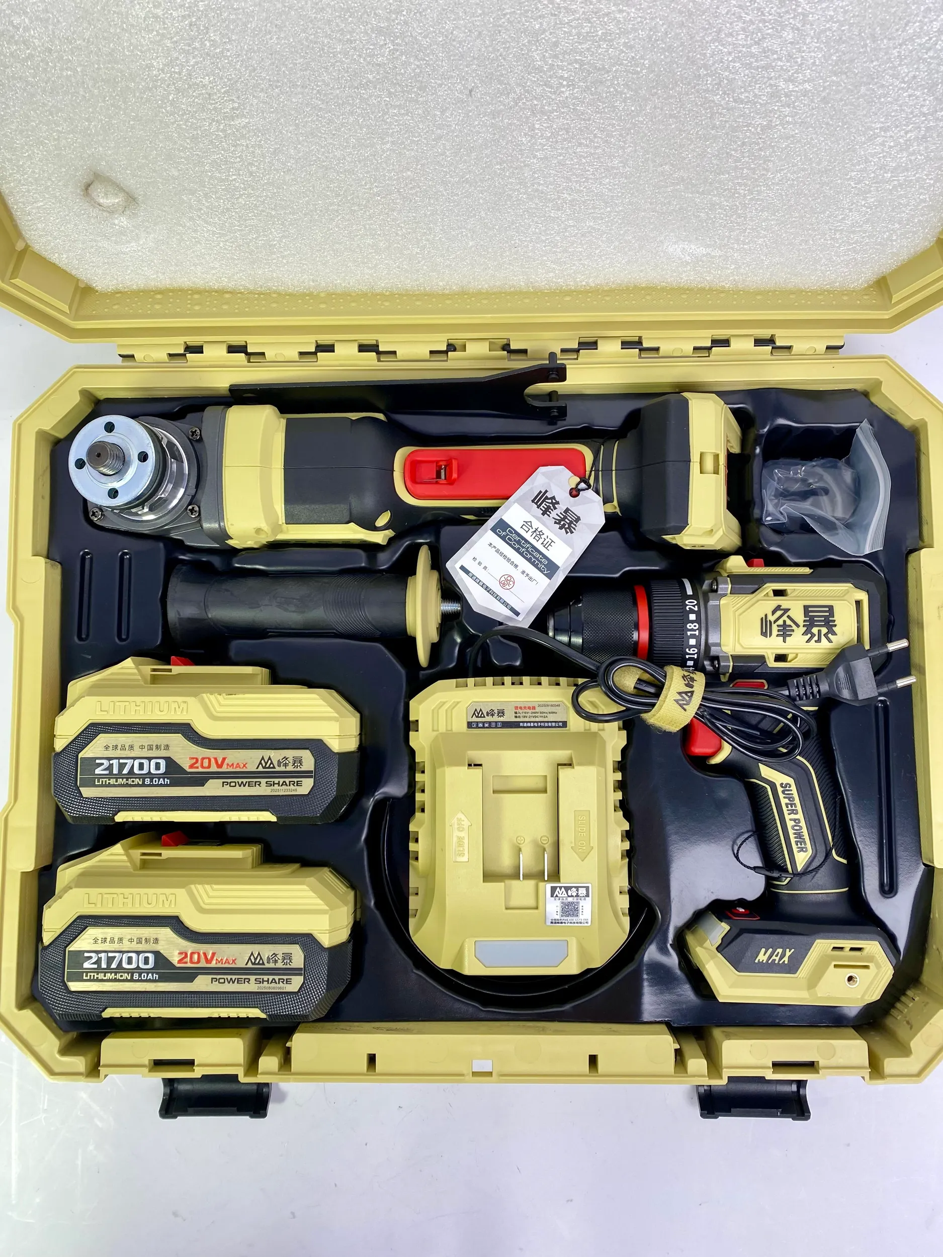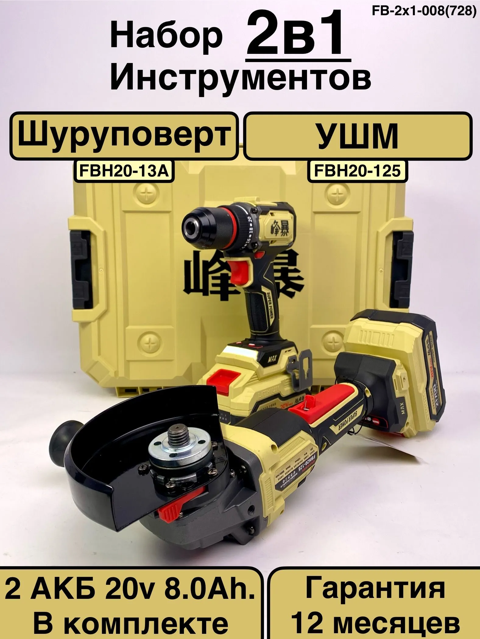 Набор аккумуляторного инструмента FengBao 2 в 1: Дрель-шуруповерт FBH20-13A (90 Нм) + УШМ FBH20-125 (125 мм), бесщеточный, 2 АКБ Li-Ion, кейс