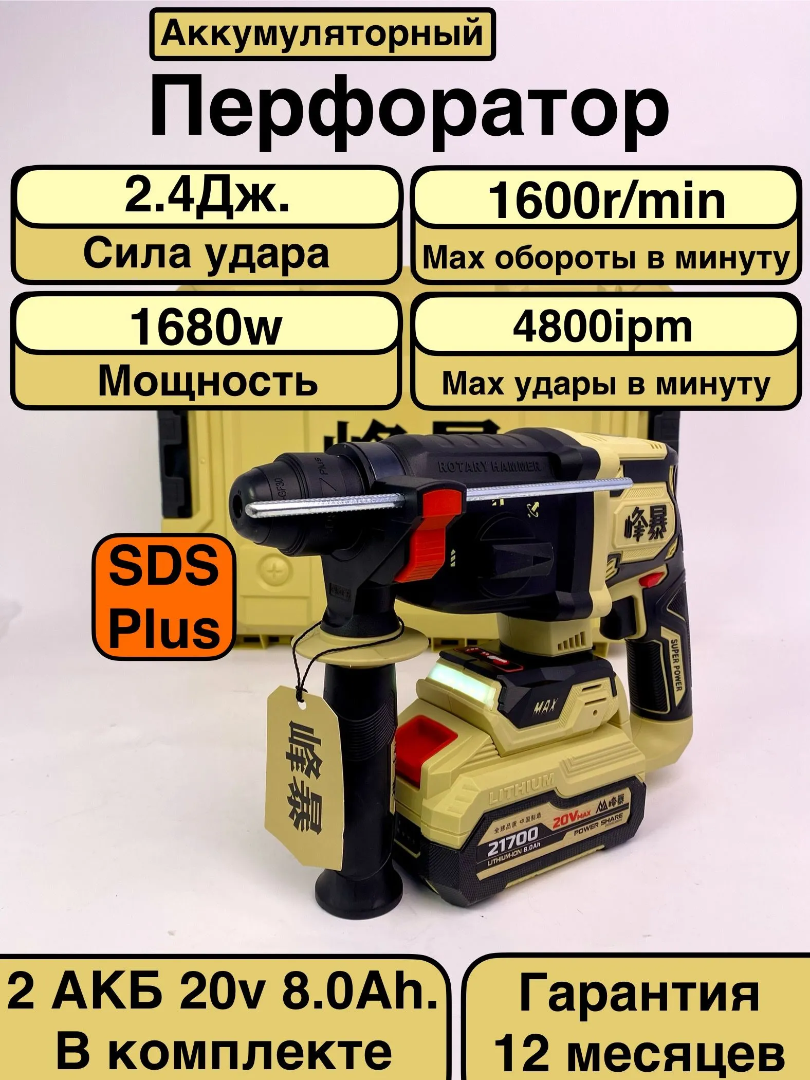 FENGBAO Перфоратор 1680 Вт, 2 акк.