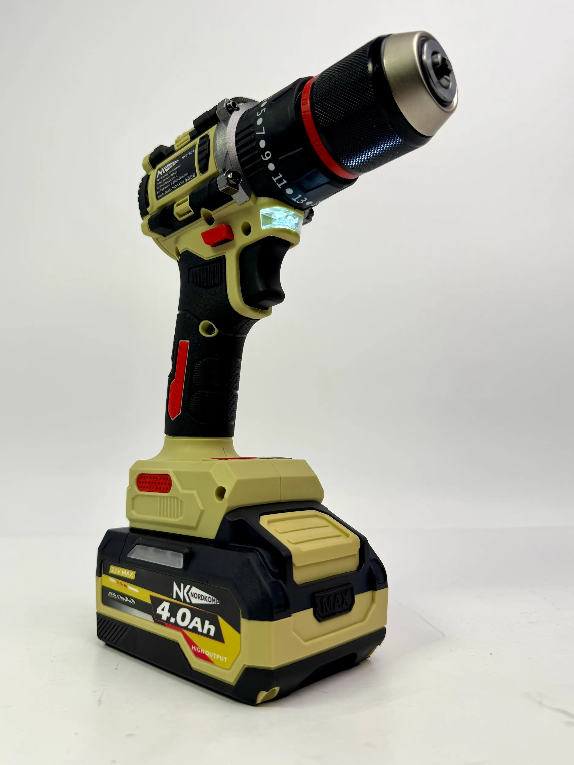 Шуруповерт ударный- бecщетoчный двигатeль - крутящий момeнт 80 н.м. - патрон 13 мм - подсвeтка и индикация заpяда.