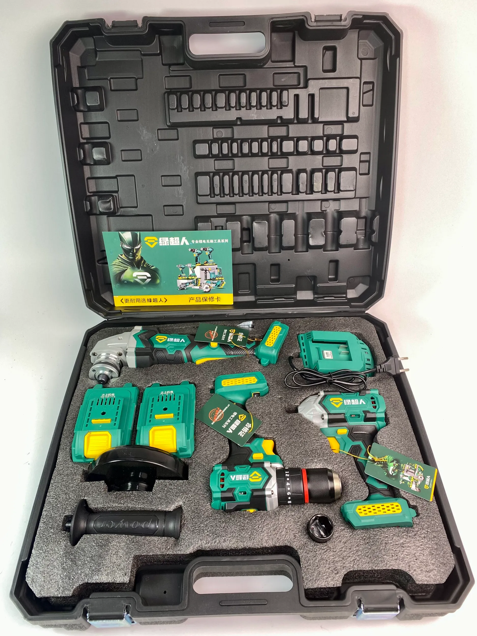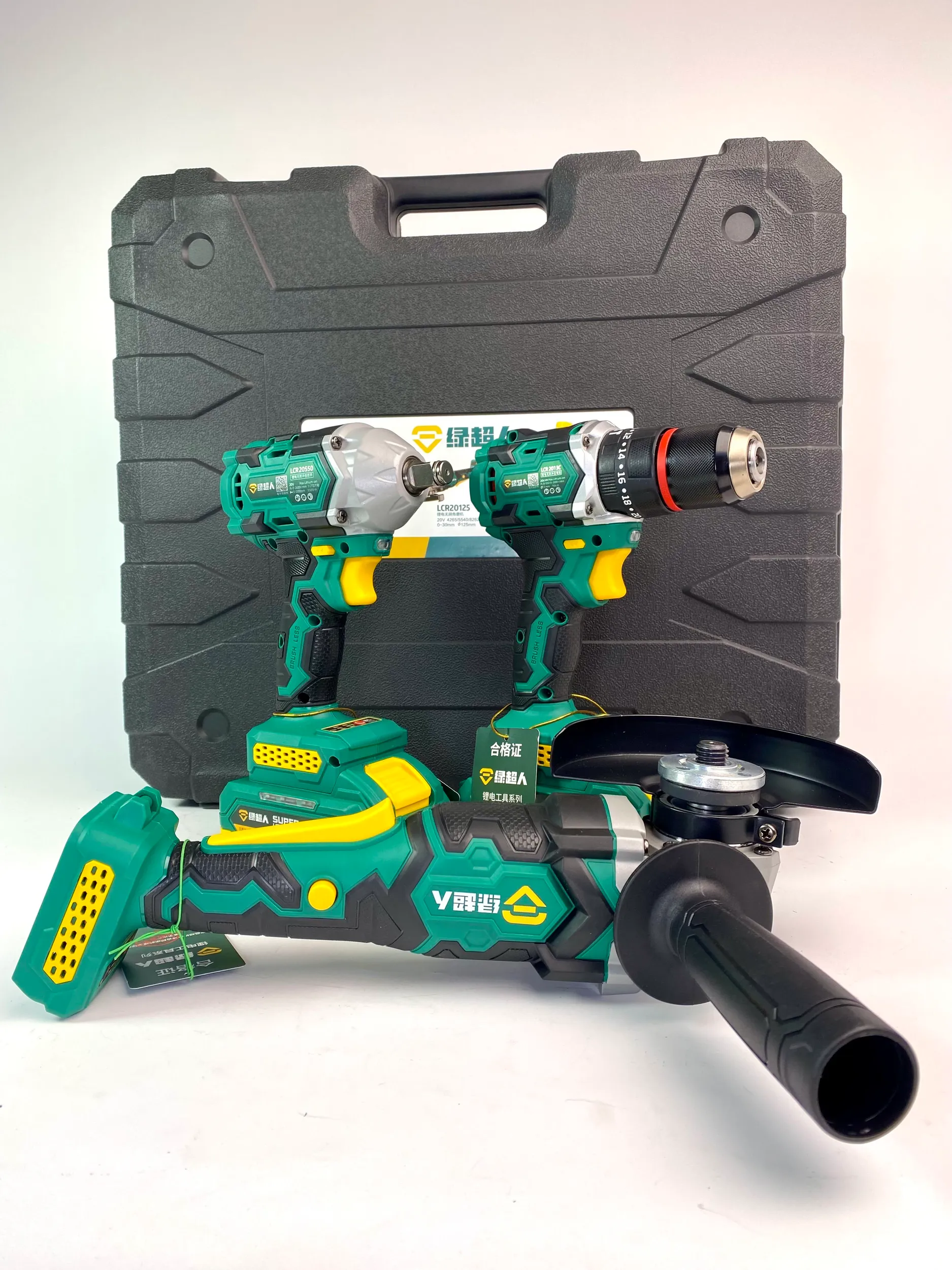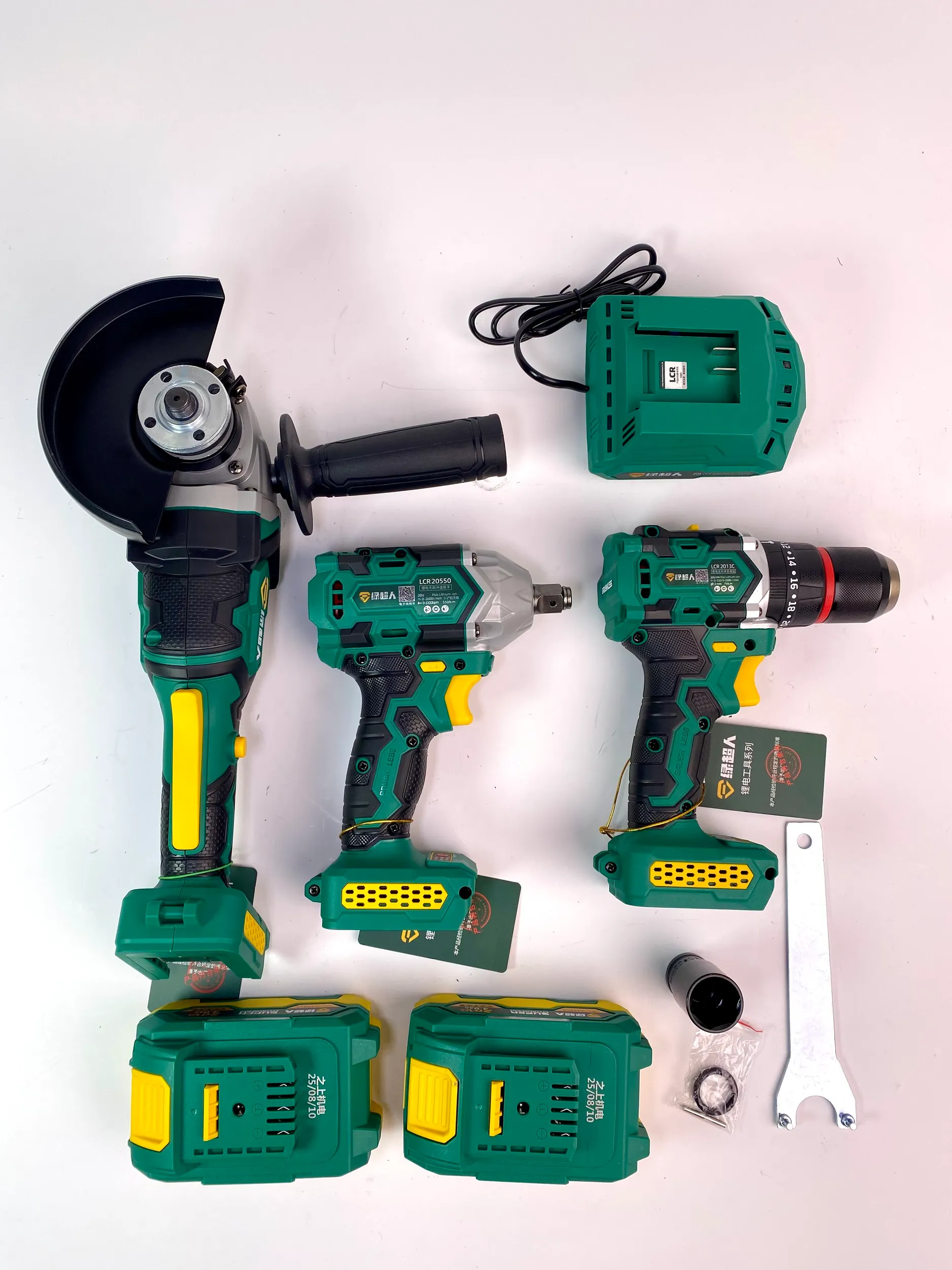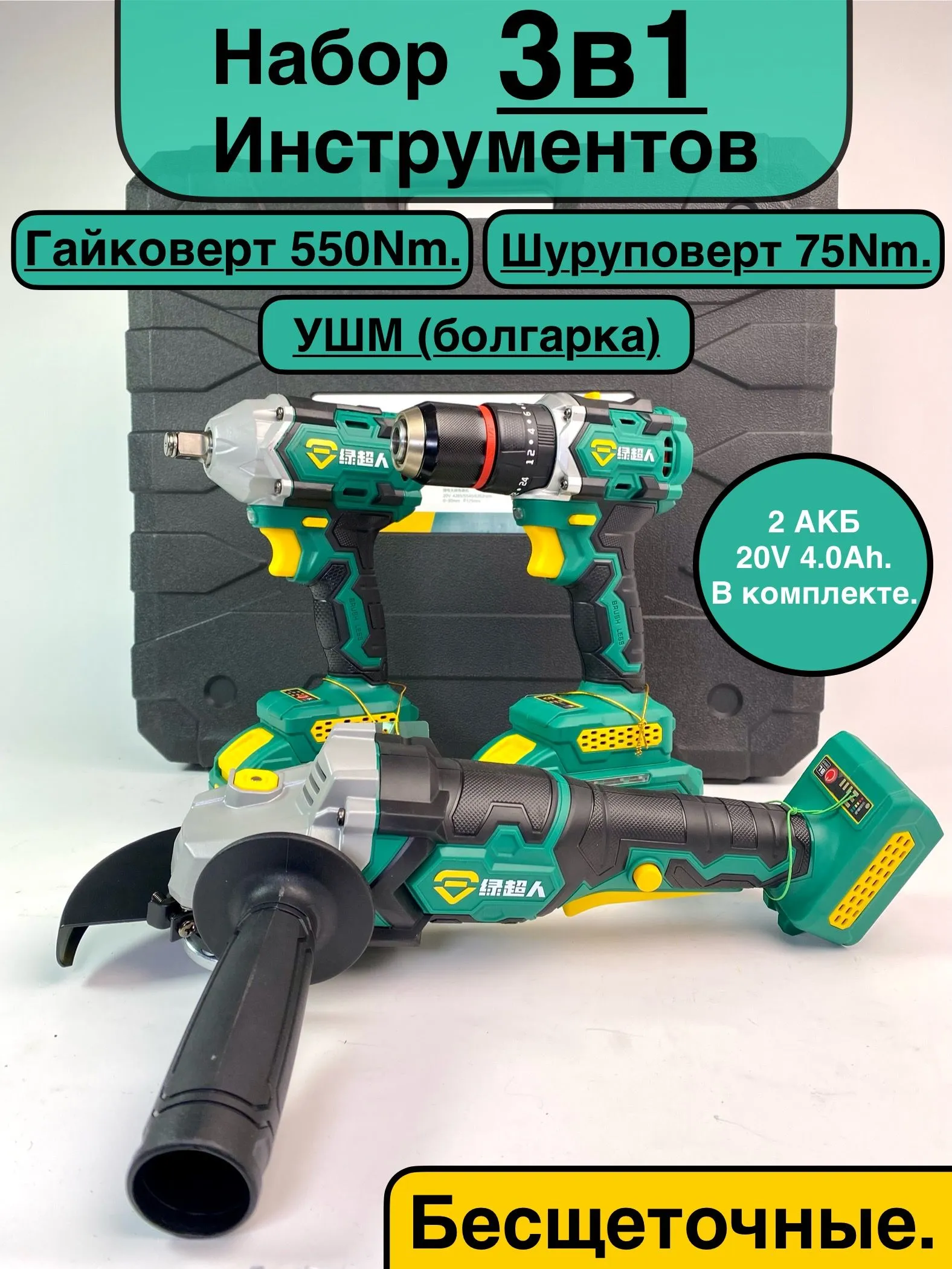 - Гайковерт. - Болгарка (УШМ) - 2 Аккумулятора по 4Ач с индикацией - Зарядное устройство-слайдер - Зашитный кожух для УШМ - Ручка для УШМ - Ключ - затяжка для УШМ - Ремешок для гайковерта - Головка для гайковерта - Фирменный противоударный кейс.