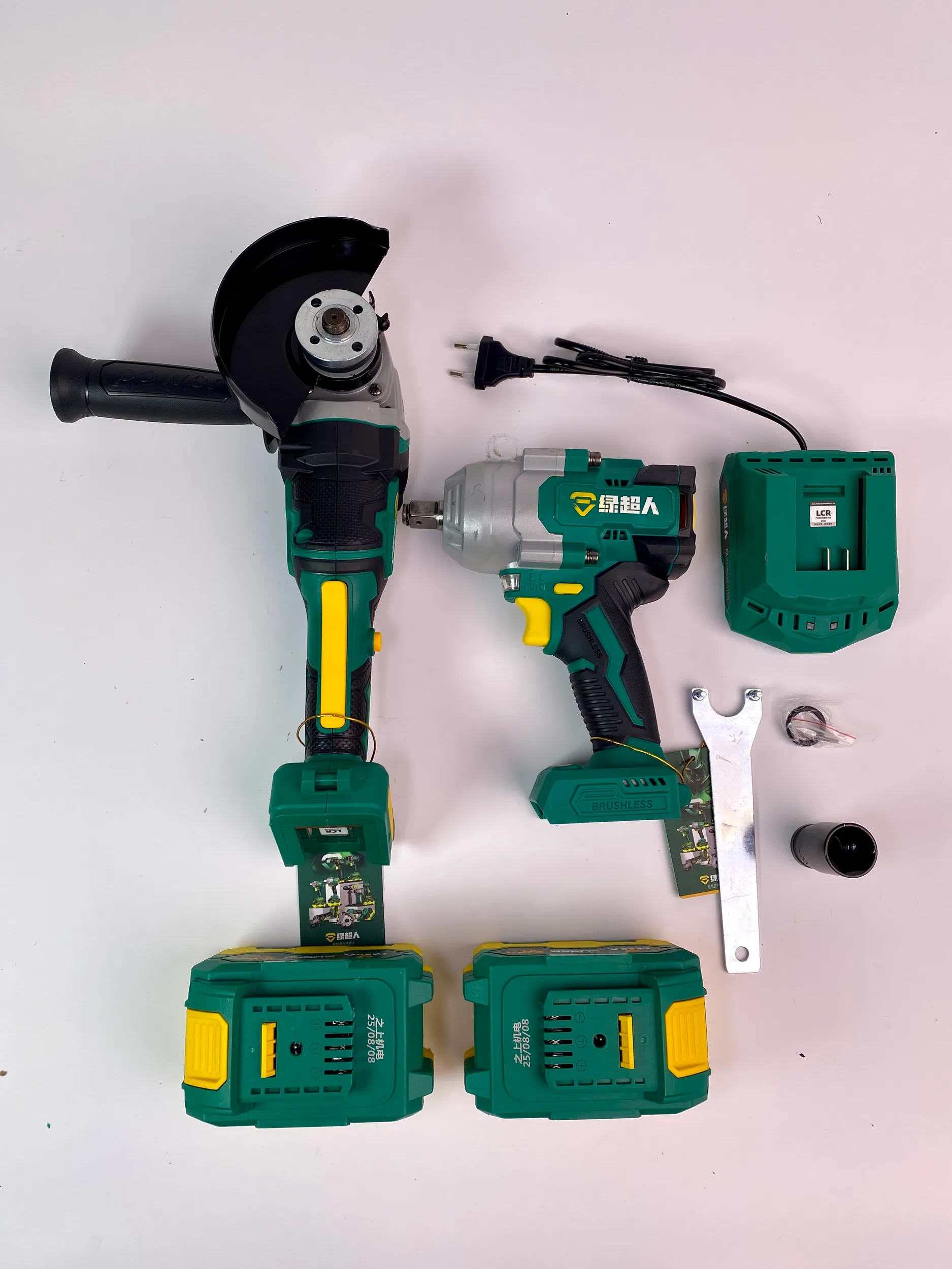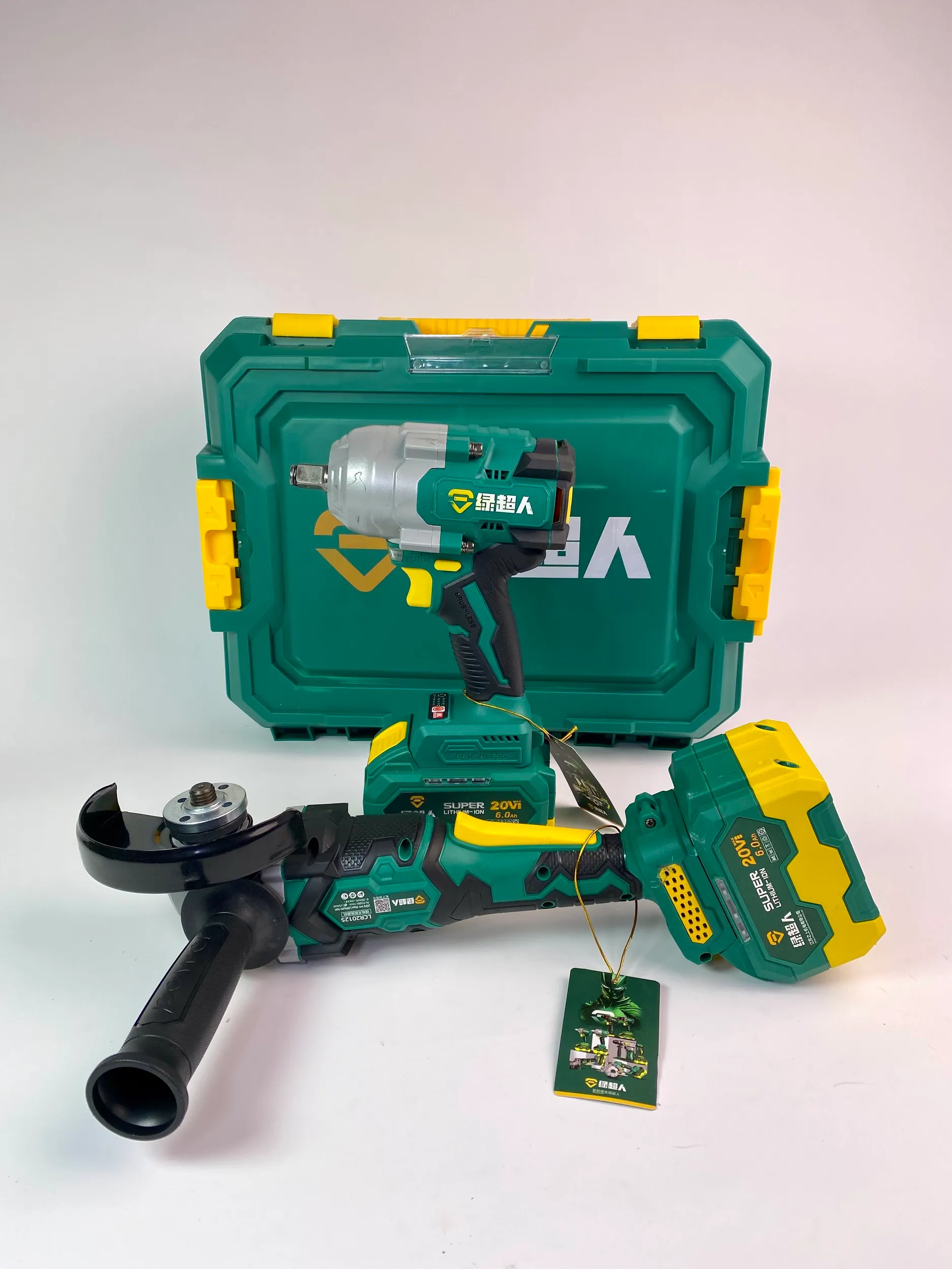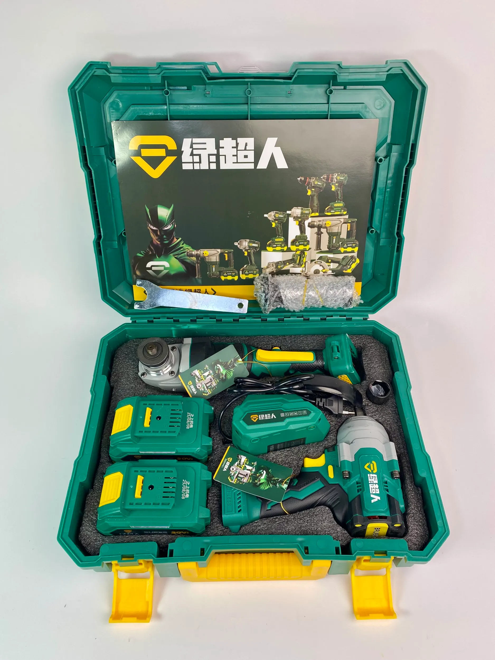 Болгарка (Ушм) Supermen Ударный гайковерт Supermen 1200 2 мощных аккумулятора ёмкостью 6.0 ампер каждый 1 зарядная станция 2 ампера Ручка и кожух для УШМ Головка и кольцо для гайковерта Фирменный пластиковый кейс
